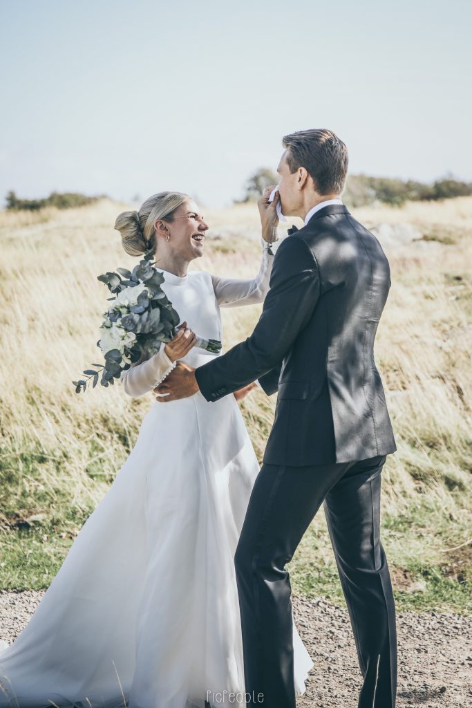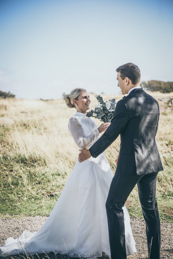 Brudparet hade valt att göra sin porträttfotografering själva, utan sitt brudfölje så Christoffer och jag hoppade in i min bil för att åka till den location som vi tillsammans valt ut för detta. Väl där fick Christoffer vänta några nervösa minuter innan hans blivande fru mötte oss där. Och detta ögonblick hörni… Alltså jag får sån gåshud nu när jag tänker tillbaka på det. Underbart vackert att bevittna.