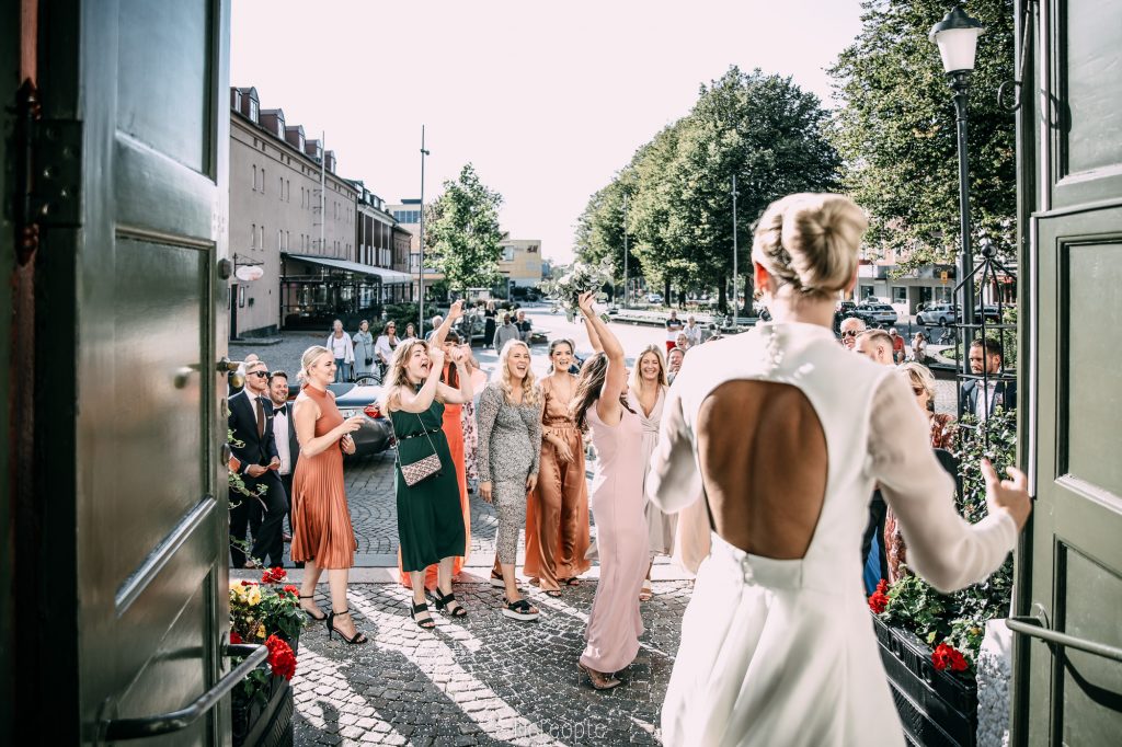 Bruden kastade buketten till alla ogifta tjejer och med tanke på hur glad vinnaren blev så tippar jag på att det blir ett bröllop till snart där.