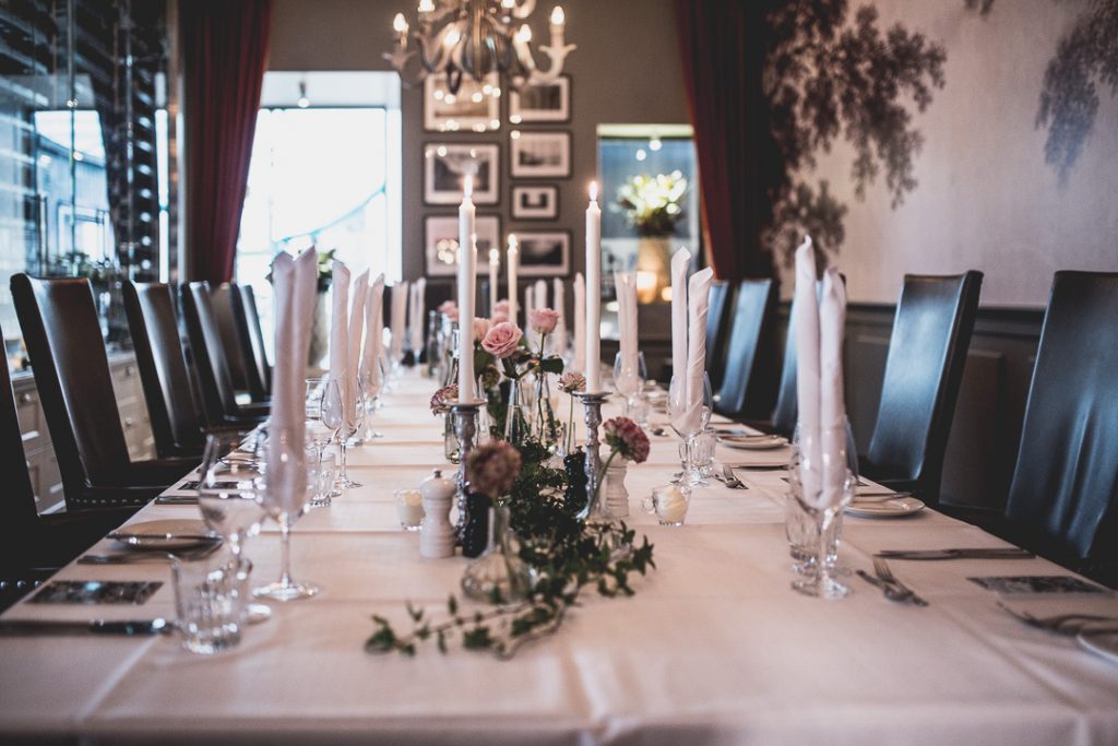 Själva bröllopsfesten hölls på Varbergs Stadshotell som var otroligt vacker dukat i en del av restaurangen.